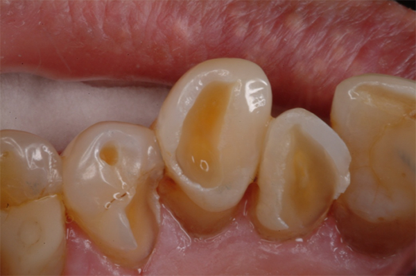 A man in his late 70s presented with worn dentition on his left side (Figure 4). The damage occurred over many years. Treatment options can range from full-mouth rehabilitation to spot-treating areas with a giomer flowable. The decision was made to repair these areas with flowables. Giomer flowables are strong and rival hybrids in their physical properties; therefore, they are effective, esthetically pleasing, and easier to use. The direct restorative approach is also a very cost-effective option.